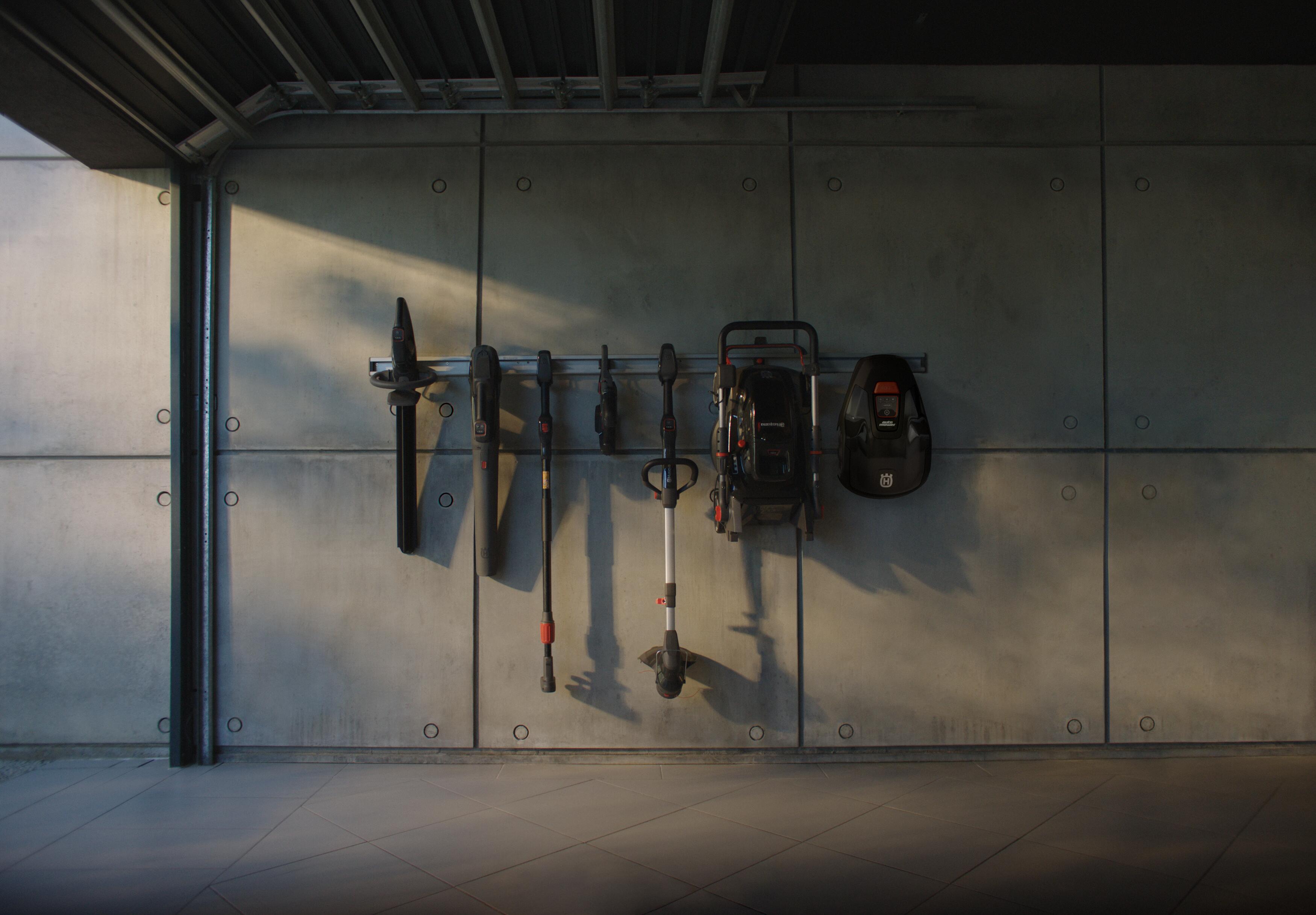 Creat pentru depozitare ușoară datorită cârligului proiectat special și designului compact. Uneltele Aspire™ pot deveni ușor mai puțin voluminoase, datorită pieselor reglabile, pliabile sau detașabile, care facilitează depozitarea și transportul în spații înguste, precum adăposturile mici sau automobilele. Utilizând cârligul inclus în fiecare pachet, puteți alege să le depozitați direct pe perete sau le puteți suspenda pe șina depozitare pe perete, ca parte integrantă din sistemul de depozitare Husqvarna Aspire™. Accesoriul șină se vinde separat.